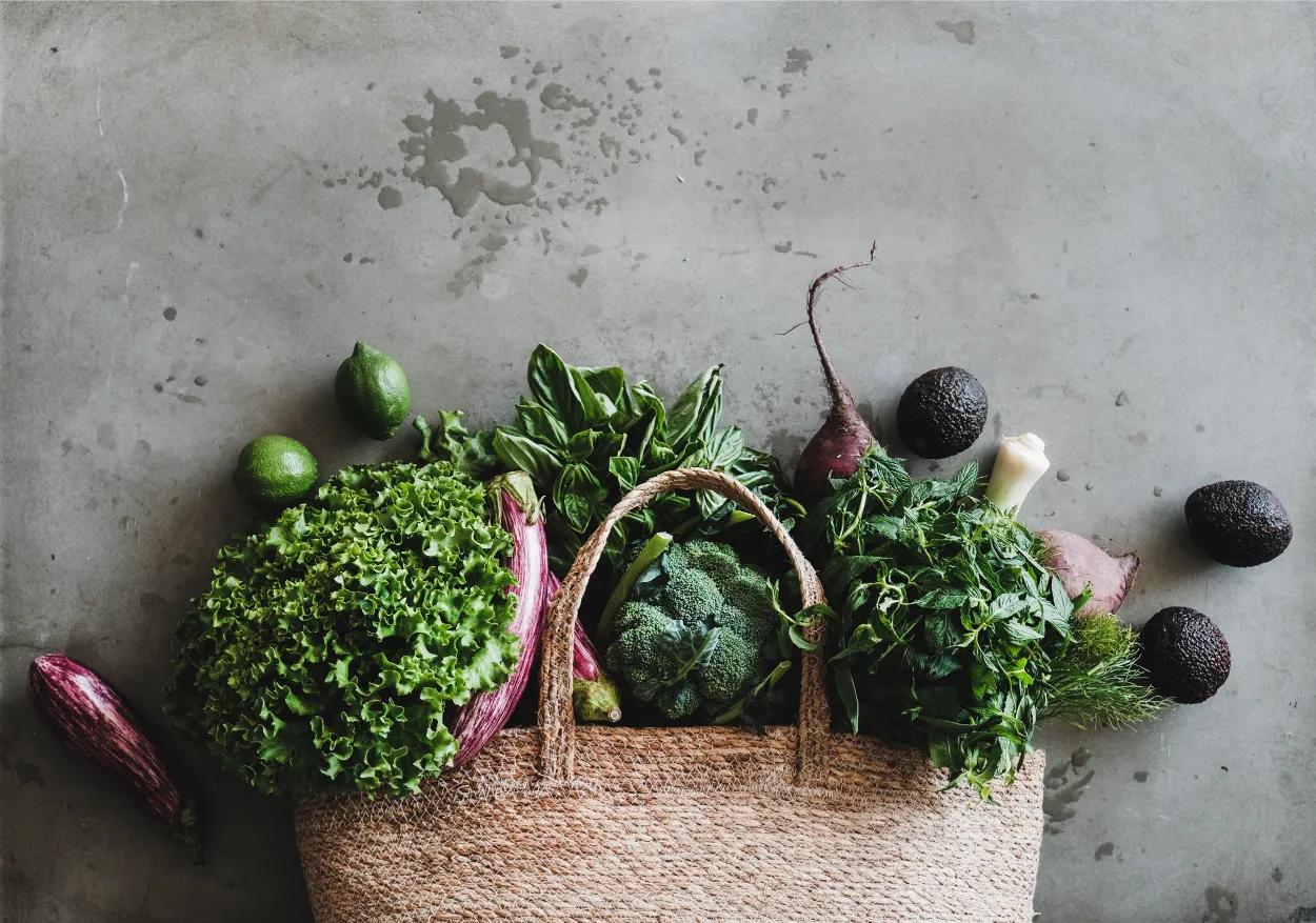Grönsaker, sallad, soltorkad tomat, ruccola, syltad rödlök & pestocreme